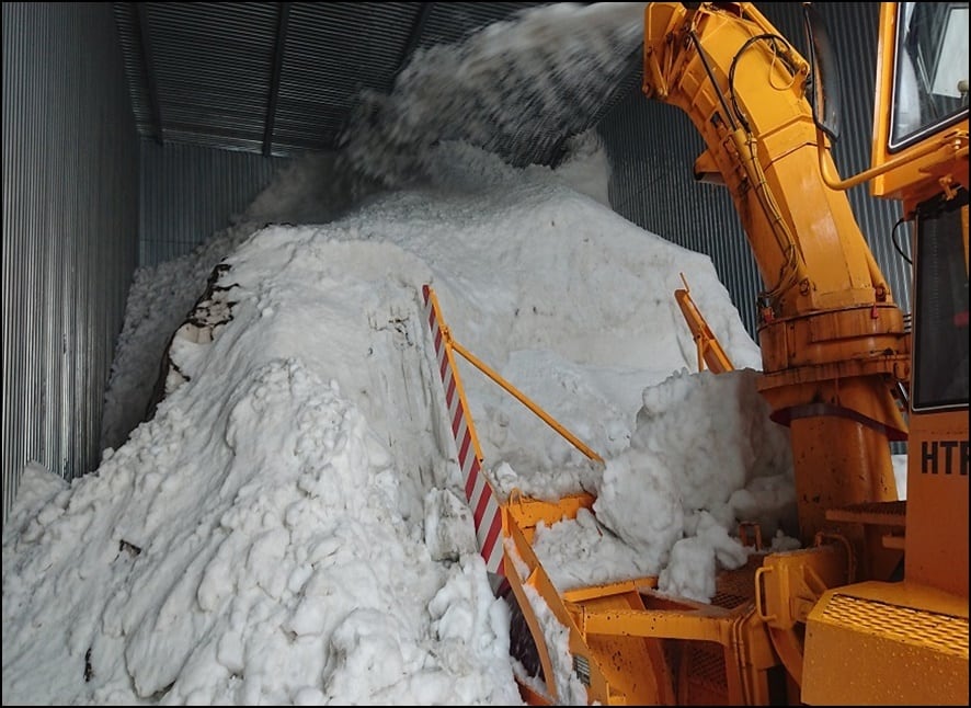 当店所有の天然雪を利用した雪冷房循環システム、【雪室貯蔵庫】は、庫内温度5℃・湿度75%で年間を通して管理しています。それにより適度な湿度で保たれ、古米臭の原因とされる脂肪酸度の上昇を抑制し、新米同様の食味・香りを維持します。また、電気冷蔵庫に比べ二酸化炭素の排出(CO2)排出が低減され地球環境に優しく、丹精込めたお米を更に甘くマイルドな口当たりに熟成させます。